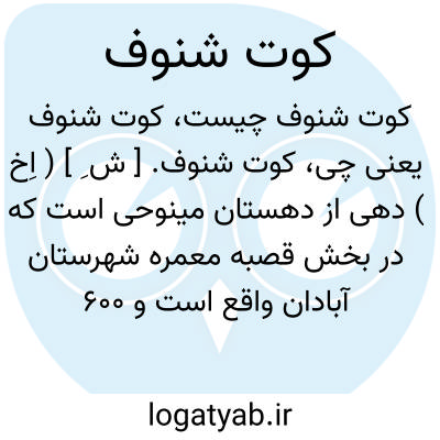 کوت شنوف. [ ش ِ ] ( اِخ ) دهی از دهستان مینوحی است که در بخش قصبه معمره شهرستان آبادان واقع است و 600 تن سکنه دارد. ( از فرهنگ جغرافیایی ایران ج 6 ).