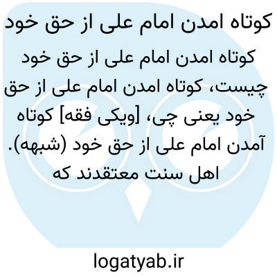 [ویکی فقه] کوتاه آمدن امام علی از حق خود (شبهه). اهل سنت معتقدند که خلافت و جانشینی پیامبر (صلی الله علیه و آله وسلّم) حق امام علی (علیه السّلام) نبود، چراکه اگر در واقع حق با علی (علیه السّلام) بود، از حق خود کوتاه نمی آمد و حال که از حق خود کوتاه آمده است؛ لذا تأکید شیعیان بر مذهب و عقائد خود بی مورد است. در این مقاله این شبهه مورد نقد و بررسی قرار می گیرد.