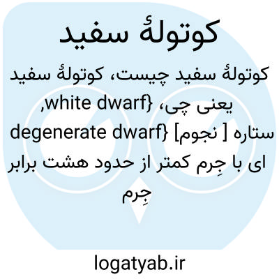 {white dwarf, degenerate dwarf} [نجوم ] ستاره ای با جِرم کمتر از حدود هشت برابر جِرم خورشید در آخرین مرحلۀ تحول خود، که در آن فشار الکترون های واگِن (degenerated electrons ) با نیروی گرانش به تعادل رسیده است