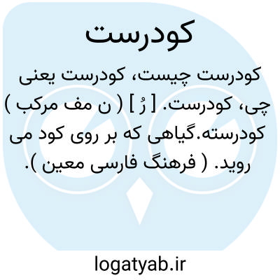 لغت نامه دهخدا کودرست. [ رُ ] ( ن مف مرکب ) کودرسته.گیاهی که بر روی کود می روید. ( فرهنگ فارسی معین ).