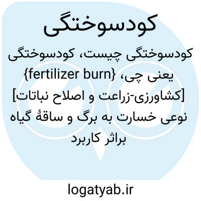 {fertilizer burn} [کشاورزی-زراعت و اصلاح نباتات] نوعی خسارت به برگ و ساقۀ گیاه براثر کاربرد بیش ازاندازۀ کود و مواد شیمیایی
