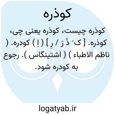 لغت نامه دهخدا کوذره. [ ک َ ذَ رَ / رِ ] ( اِ ) کودره. ( ناظم الاطباء ) ( اشتینگاس ). رجوع به کودره شود.