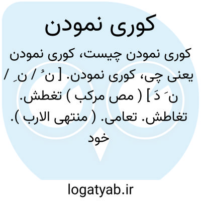 کوری نمودن. [ ن ُ / ن ِ / ن َ دَ ] ( مص مرکب ) تغطش. تغاطش. تعامی. ( منتهی الارب ). خود را به نابینایی زدن. برخلاف حقیقت اظهار کوری کردن.