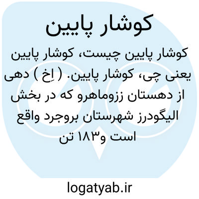 کوشار پایین. ( اِخ ) دهی از دهستان ززوماهرو که در بخش الیگودرز شهرستان بروجرد واقع است و183 تن سکنه دارد. ( از فرهنگ جغرافیایی یران ج 6 ).