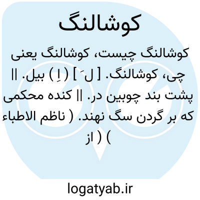 کوشالنگ. [ ل َ ] ( اِ ) بیل. || پشت بند چوبین در. || کنده محکمی که بر گردن سگ نهند. ( ناظم الاطباء ) ( از اشتینگاس ). || منجنیق. ( ناظم الاطباء ). || ( ص ) مرد گول و نادان. || خروس کلان. ( ناظم الاطباء ) ( از اشتینگاس ).