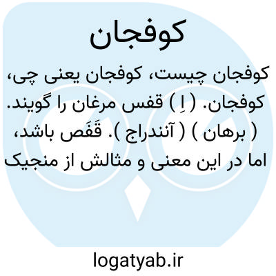کوفجان. ( اِ ) قفس مرغان را گویند. ( برهان ) ( آنندراج ). قَفَص باشد، اما در این معنی و مثالش از منجیک تأمل است. ( از فرهنگ رشیدی ). فرهنگ نویسان این دو بیت را شاهد آورده اند: