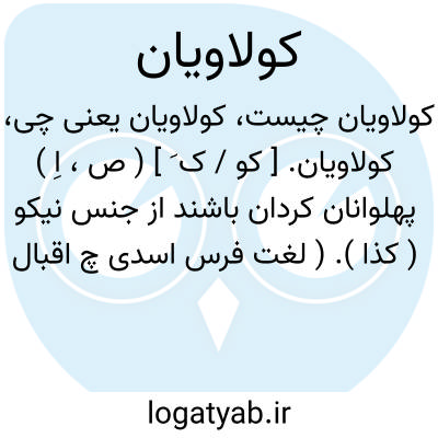 کولاویان. [ کو / ک َ ] ( ص، اِ ) پهلوانان کردان باشند از جنس نیکو ( کذا ). ( لغت فرس اسدی چ اقبال ص 394 ). پهلوانان و گردان را گویند. ( برهان ) ( آنندراج ). گرد و پهلوان. ( ناظم الاطباء ). اقبال در حاشیه 7 ص 394 لغت فرس نوشته اند: سابقاً مفرد این لغت، یعنی کولا را از همین نسخه نقل کردیم و باز هم معنی درست این کلمه معلوم نشد. مؤلف لغت فرس در ذکر کولانویسد: «کولا زبان کردان بود، بارانی گوید: در بیابان...» آقای دهخدا نوشته اند: این کلمه شولای امروز است و ظاهراً عبارت این بوده که «کولا به زبان کردان بارانی بود» و نام شاعر افتاده است میان «بود» و «گوید». و نیز عبارت ص 394 لغت فرس را چنین تصحیح کرده اند:کولا، وین بارانی که پهلوانان کردان پوشند از جنس نیکو. ( حاشیه برهان چ معین ). مرحوم دهخدا در یادداشتی آرد: کولاویان پهلوانان کردان باشند از جنس نیکو بارانی گوید. ( حاشیه فرهنگ اسدی نخجوانی ):