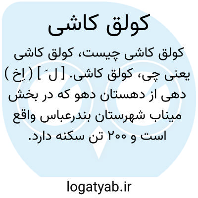 لغت نامه دهخدا کولق کاشی. [ ل َ ] ( اِخ ) دهی از دهستان دهو که در بخش میناب شهرستان بندرعباس واقع است و 200 تن سکنه دارد. ( از فرهنگ جغرافیایی ایران ج 8 ).