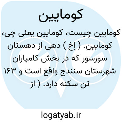 کومایین. ( اِخ ) دهی از دهستان سورسور که در بخش کامیاران شهرستان سنندج واقع است و 163 تن سکنه دارد. ( از فرهنگ جغرافیایی ایران ج 5 ).