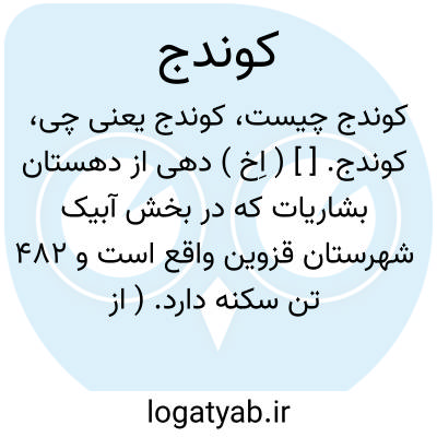 کوندج. [ ] ( اِخ ) دهی از دهستان بشاریات که در بخش آبیک شهرستان قزوین واقع است و 482 تن سکنه دارد. ( از فرهنگ جغرافیایی ایران ج 1 ).