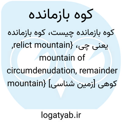 {relict mountain, mountain of circumdenudation, remainder mountain} [زمین شناسی] کوهی متشکل از سنگ های مقاوم که پس از فرسایش سنگ های نامقاوم اطراف باقی مانده است