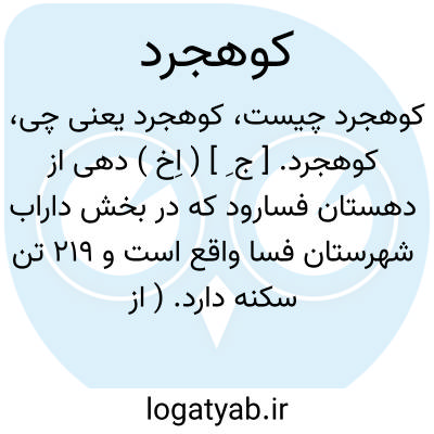 کوهجرد. [ ج ِ ] ( اِخ ) دهی از دهستان فسارود که در بخش داراب شهرستان فسا واقع است و 219 تن سکنه دارد. ( از فرهنگ جغرافیایی ایران ج 7 ).