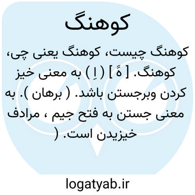 کوهنگ. [ هََ ] ( اِ ) به معنی خیز کردن وبرجستن باشد. ( برهان ). به معنی جستن به فتح جیم، مرادف خیزیدن است. ( آنندراج ). برجستن. ( فرهنگ رشیدی ) ( از فرهنگ جهانگیری ). خیز و برجستگی. ( ناظم الاطباء ).