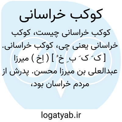 کوکب خراسانی. [ ک َ ک َ ب ِ خ ُ ] ( اِخ ) میرزا عبدالعلی بن میرزا محسن. پدرش از مردم خراسان بود، اما وی در یزد متولد شد. در حسن خط خاصه در نسخ از امثال میرزا احمد نیریزی بشمار می رفت و در زمان فتحعلی شاه به منصب صدارت رسید و گاهی شعر نیز می سرود. رباعی زیر از اوست: