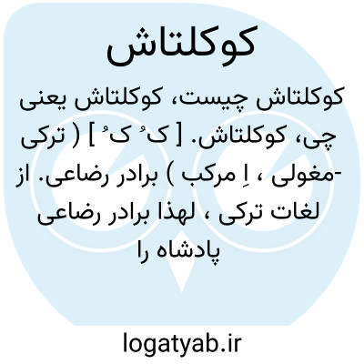 کوکلتاش. [ ک ُ ک ُ ] ( ترکی -مغولی، اِ مرکب ) برادر رضاعی. از لغات ترکی، لهذا برادر رضاعی پادشاه را کوکلتاش خان لقب باشد. مؤلف گوید که برادر رضاعی در اینجا مراد از پسر دایه نیست، بلکه شخصی دیگر باشد و کوکلتاش مرکب است از کوکه و تاش و لام تبجیل، زیرا که کوکه پسر دایه را گویند و تاش مبدل داش که کلمه اشتراک است، چنانکه در فارسی لفظ هم. پس کوکلتاش به معنی هم کوکه باشد، یعنی دو شخص که شریک دایه خورده باشند بالضروره پسر آن دایه آن هر دو شخص را کوکه باشد و آن هر دو شخص با هم کوکلتاش باشند، یعنی هم کوکه و آنچه کوکلتاش به معنی پسر دایه گویند ظاهراً مجاز باشد که او را در ترکی فقط کوکه نامند. ( غیاث ) ( از آنندراج ). برادر رضاعی. ( از فرهنگ فارسی معین ). و رجوع به تاش شود.
