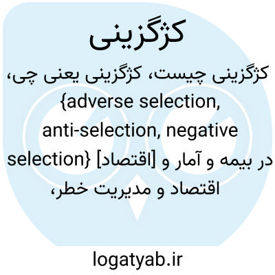 {adverse selection, anti-selection, negative selection} [اقتصاد] در بیمه و آمار و اقتصاد و مدیریت خطر، فرایندی که در آن وقتی خریداران و فروشندگان اطلاعات نابرابر دارند، نتایج «بد» بروز می کند؛ به این معنی که در چنین وضعیتی محتمل تر است که محصولات یا مشتریان «بد» انتخاب شوند