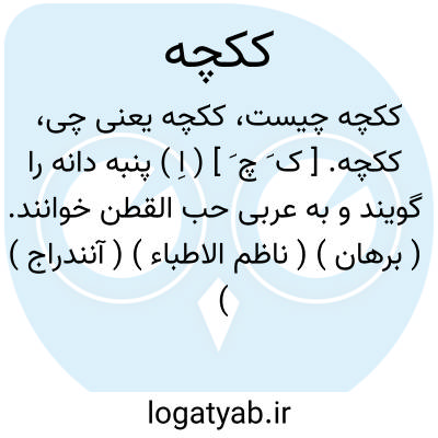 ککچه. [ ک َ چ َ ] ( اِ ) پنبه دانه را گویند و به عربی حب القطن خوانند. ( برهان ) ( ناظم الاطباء ) ( آنندراج ) ( انجمن آرای ناصری ).
