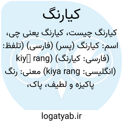 اسم: کیارنگ (پسر) (فارسی) (تلفظ: kiyā rang) (فارسی: کيارنگ) (انگلیسی: kiya rang)