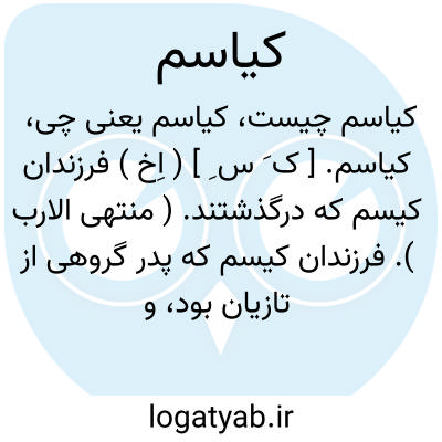 لغت نامه دهخدا کیاسم. [ ک َ س ِ ] ( اِخ ) فرزندان کیسم که درگذشتند. ( منتهی الارب ). فرزندان کیسم که پدر گروهی از تازیان بود، و اکنون منقرض شده اند. ( از ناظم الاطباء ). رجوع به کیسم شود.