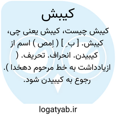 لغت نامه دهخدا کیبش. [ ب ِ ] ( اِمص ) اسم از کیبیدن. انحراف. تحریف. ( ازیادداشت به خط مرحوم دهخدا ). رجوع به کیبیدن شود.