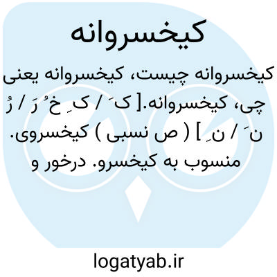 لغت نامه دهخدا کیخسروانه.[ ک َ / ک ِ خ ُ رَ / رُ ن َ / ن ِ ] ( ص نسبی ) کیخسروی. منسوب به کیخسرو. درخور و مناسب کیخسرو: کیخسروانه جام ز خون سیاوشان گنج فراسیاب به سیما برافکند.خاقانی.
