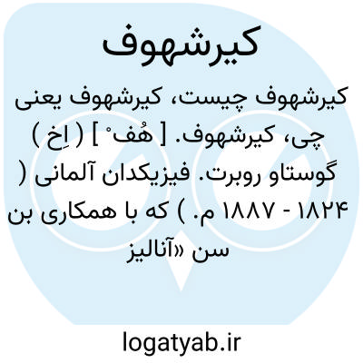 کیرشهوف. [ هُف ْ ] ( اِخ ) گوستاو روبرت. فیزیکدان آلمانی ( 1824 - 1887 م. ) که با همکاری بن سن «آنالیز اسپکترال » را کشف کرد و قوانین انحراف جریانهای الکتریسیته را تشریح نمود. ( از لاروس ).