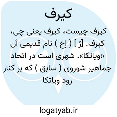 کیرف. [رُ ] ( اِخ ) نام قدیمی آن «ویاتکا». شهری است در اتحاد جماهیر شوروی ( سابق ) که بر کنار رود ویاتکا واقع است و 309000 تن سکنه دارد و صنایع نساجی و فلزسازی آن مهم است. ( از لاروس ).