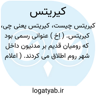 کیریتس. ( اِخ ) عنوانی رسمی بود که رومیان قدیم بر مدنیون داخل شهر روم اطلاق می کردند. ( اعلام تمدن قدیم تألیف فوستل دو کولانژ ترجمه نصراﷲ فلسفی ).