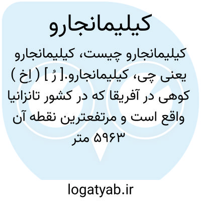 کیلیمانجارو.[ رُ ] ( اِخ ) کوهی در آفریقا که در کشور تانزانیا واقع است و مرتفعترین نقطه آن 5963 متر از سطح دریا بلندی دارد. ( از لاروس ).