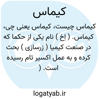 کیماس. ( اِخ ) نام یکی از حکما که در صنعت کیمیا ( زرسازی ) بحث کرده و به عمل اکسیر تام رسیده است. ( از الفهرست ابن الندیم، از یادداشت به خط مرحوم دهخدا ).