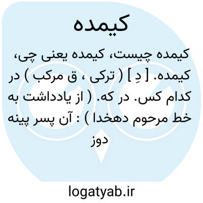 کیمده. [ دِ ] ( ترکی، ق مرکب ) در کدام کس. در که. ( از یادداشت به خط مرحوم دهخدا ):