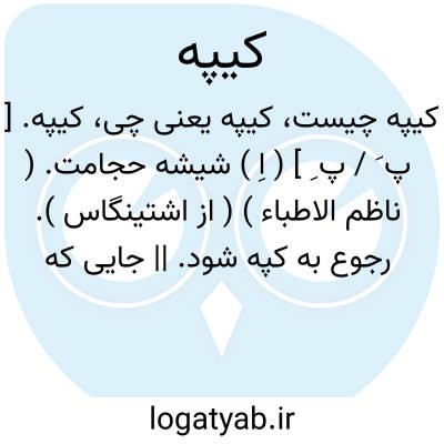 کیپه. [ پ َ / پ ِ ] ( اِ ) شیشه حجامت. ( ناظم الاطباء ) ( از اشتینگاس ). رجوع به کپه شود. || جایی که شیشه حجامت می چسبانند. ( ناظم الاطباء ) ( از اشتینگاس ).