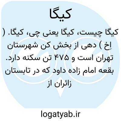 کیگا. ( اِخ ) دهی از بخش کن شهرستان تهران است و 475 تن سکنه دارد. بقعه امام زاده داود که در تابستان زائران از تهران به زیارت آن می روند در سه هزارگزی این ده واقع است. ( از فرهنگ جغرافیایی ایران ج 1 ). از قرای بلوک کن و سولقان و ارنگه در ایالت تهران و دارای معدن سرب است. ( از جغرافیای سیاسی کیهان ص 364 ). قریه ای به شمال شرقی تهران در نزدیکی امام زاده داود و یونجه زار و مردم آنجا بیشتر احول باشند. ( ازیادداشت به خط مرحوم دهخدا ). رجوع به کیگانی شود.