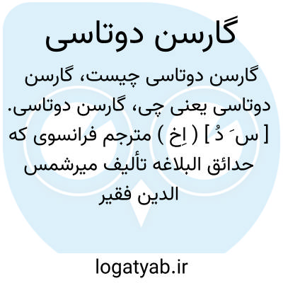 گارسن دوتاسی. [ س َ دُ ] ( اِخ ) مترجم فرانسوی که حدائق البلاغه تألیف میرشمس الدین فقیر دهلوی را به فرانسه برگرداند. او راست کتاب «عروض و قوافی زبانهای شرقی اسلامی » به فرانسه. ( رودکی، سعید نفیسی ص 830، 842 ).و نیز منطق الطیر شیخ عطار را به طبع رسانیده است.