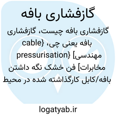 {cable pressurisation} [مهندسی مخابرات] فن خشک نگه داشتن بافه/کابل کارگذاشته شده در محیط مرطوب، با دمیدن گاز یا هوای خشک، تحت فشار زیاد، به درون غلاف بافه/کابل متـ. گازفشاری کابل