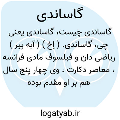 گاساندی. ( اِخ ) ( آبه پیر ) ریاضی دان و فیلسوف مادی فرانسه، معاصر دکارت، وی چهار پنج سال هم بر او مقدم بوده است و از کسانی است که در سرنگون کردن فلسفه اسکولاستیک کوشیده است اما هر چند با ارسطو مخالف بود با دکارت هم چندان موافقت نداشته و از اشخاصی است که بر او اعتراضات مفصل کرده است و در مذاق فلسفی بیشتر متمایل به ابیقور و ذیمقراطیس بوده است. ( سیرحکمت در اروپا ج 2 صص 20 - 29 ). مولد او شان تِرِسیه متولد بسال 1592 و وفات در 1655 م. است.