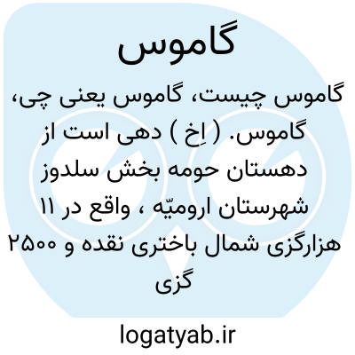 گاموس. ( اِخ ) دهی است از دهستان حومه بخش سلدوز شهرستان ارومیّه، واقع در 11 هزارگزی شمال باختری نقده و 2500 گزی جنوب شوسه نقده به اشنویه، جلگه معتدل مالاریائی، دارای 172 تن سکنه، آب آن از رود کدار، محصول آنجا غلات، توتون، چغندر، حبوبات، شغل اهالی زراعت و گله داری، صنایع دستی جاجیم بافی، راه آن مالرو است. ( از فرهنگ جغرافیایی ایران ج 4 ).