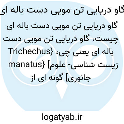 {Trichechus manatus} [زیست شناسی- علوم جانوری] گونه ای از تیرۀ تن موئیان و راستۀ گاودریایی سانان با بدنی خاکستری و تقریباً بدون مو که فاقد اندام حرکتی عقبی است و اندام حرکتی جلوی آن کوتاه و انعطاف پذیر است