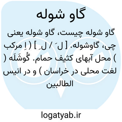 گاوشوله. [ ل َ / ل ِ ] ( اِ مرکب ) محل آبهای کثیف حمام. گُوشَلَه ( لغت محلی در خراسان ) و در انیس الطالبین بخاری نسخه خطی مؤلف ص 186 کلمه پالایش مرادف این لغت آمده است. رجوع به پالایش... شود.