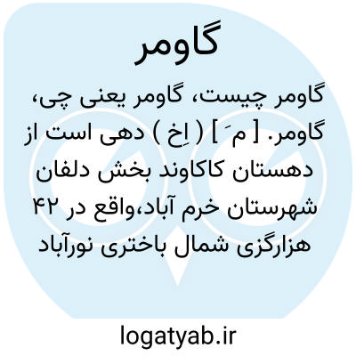 گاومر. [ م َ ] ( اِخ ) دهی است از دهستان کاکاوند بخش دلفان شهرستان خرم آباد،واقع در 42 هزارگزی شمال باختری نورآباد و 3 هزارگزی باختر شوسه خرم آباد به کرمانشاه، جلگه، سردسیر، مالاریائی، دارای 108 تن سکنه. آب آن از چشمه، محصول آن غلات، تریاک، لبنیات، پشم، شغل اهالی زراعت و گله داری است. راه مالرو، ساکنین از طایفه مظفروند، قسمتی چادرنشین هستند. ( از فرهنگ جغرافیایی ایران ج 6 ).