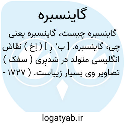 لغت نامه دهخدا گاینسبره. [ ب ُ رِ ] ( اِخ ) نقاش انگلیسی متولد در سَدبِری ( سفک ) تصاویر وی بسیار زیباست. ( 1727 - 1788 م. ).