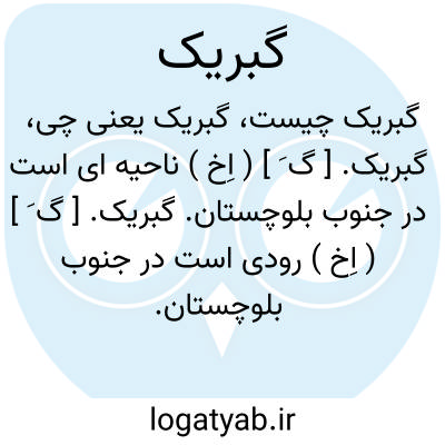 لغت نامه دهخدا گبریک. [ گ َ ] ( اِخ ) ناحیه ای است در جنوب بلوچستان.گبریک. [ گ َ ] ( اِخ ) رودی است در جنوب بلوچستان.