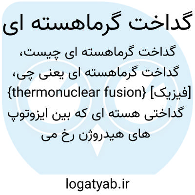 {thermonuclear fusion} [فیزیک] گداختی هسته ای که بین ایزوتوپ های هیدروژن رخ می دهد و در آن هسته ها براثر دما و فشار فوق العاده زیاد بر رانش متقابل ایستابرقی/ الکترواستاتیکی شان غلبه می کنند