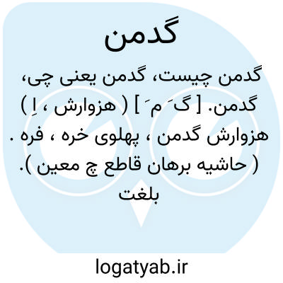 گدمن. [ گ َ م َ ] ( هزوارش، اِ ) هزوارش گدمن، پهلوی خره، فره. ( حاشیه برهان قاطع چ معین ). بلغت ژند و پاژند بمعنی نور باشد که روشنایی معنوی است. ( برهان ) ( آنندراج ).