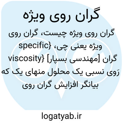 {specific viscosity} [مهندسی بسپار] گران رَوی نسبی یک محلول منهای یک که بیانگر افزایش گران روی حلال براثر حل کردن بسپار با غلظت مشخص است