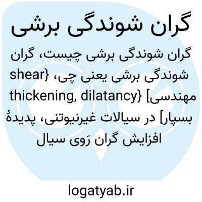 {shear thickening, dilatancy} [مهندسی بسپار] در سیالات غیرنیوتنی، پدیدۀ افزایش گران رَوی سیال تحت تنش برشی