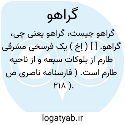 لغت نامه دهخدا گراهو. [ ] ( اِخ ) یک فرسخی مشرقی طارم از بلوکات سبعه و از ناحیه طارم است. ( فارسنامه ناصری ص 218 ).