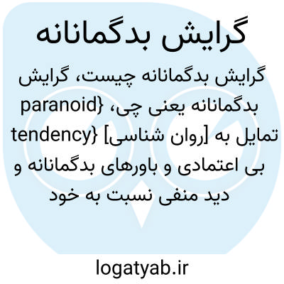 {paranoid tendency} [روان شناسی] تمایل به بی اعتمادی و باورهای بدگمانانه و دید منفی نسبت به خود و دیگران