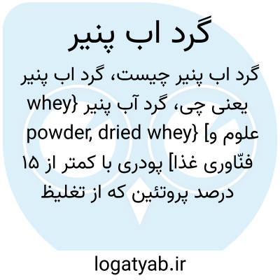 {whey powder, dried whey} [علوم و فنّاوری غذا] پودری با کمتر از 15 درصد پروتئین که از تغلیظ و خشک کردن آب پنیر به روش افشانه ای تولید می شود