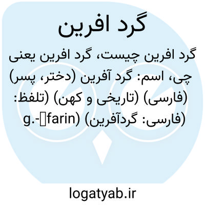 اسم: گرد آفرین (دختر، پسر) (فارسی) (تاریخی و کهن) (تلفظ: g.-āfarin) (فارسی: گردآفرين) (انگلیسی: gord-afarin)